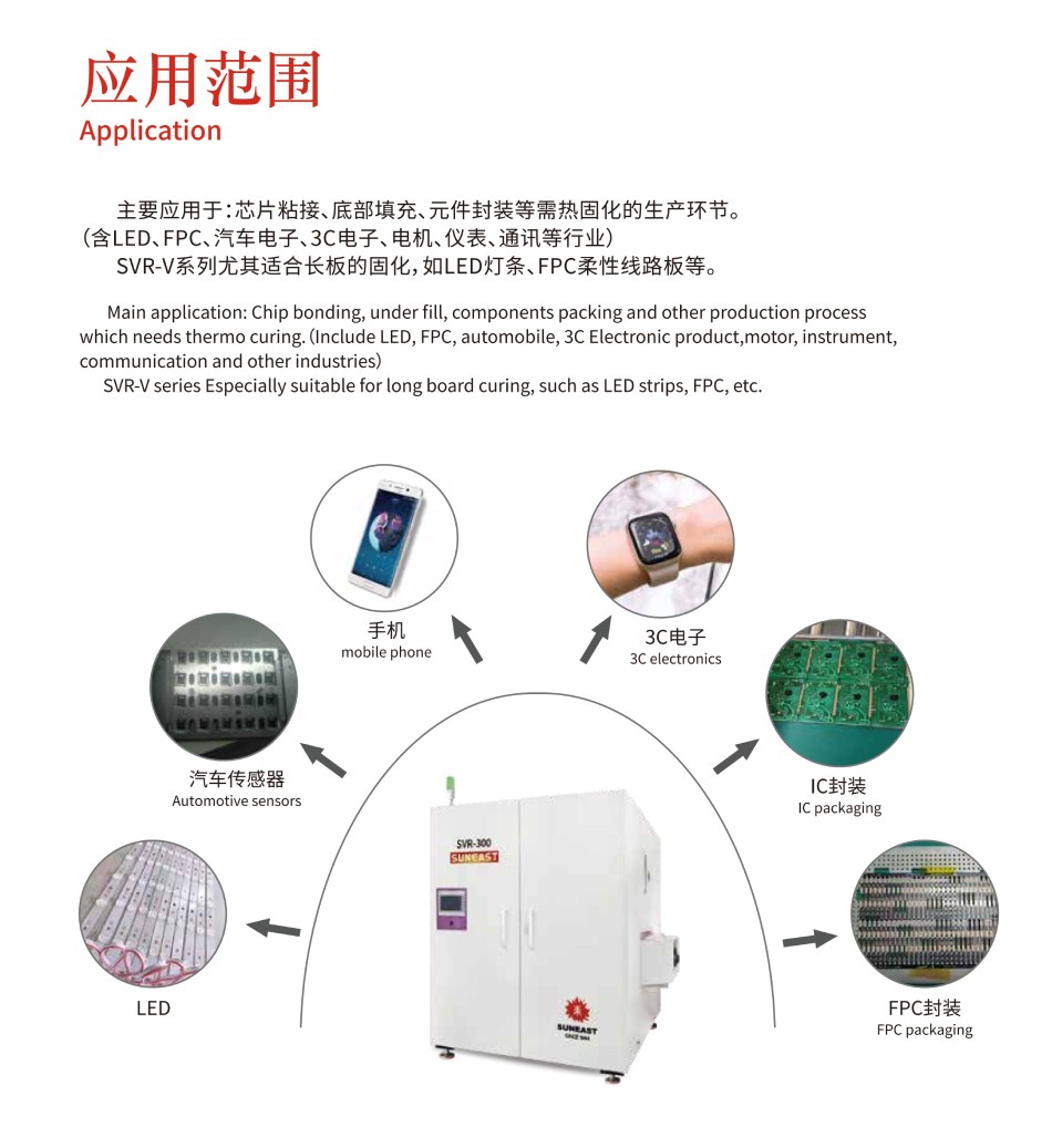 主要應(yīng)用于:垂直爐SVR-V系列尤其適合長(zhǎng)板的固化,如LED燈條、FPC柔性線路板等。