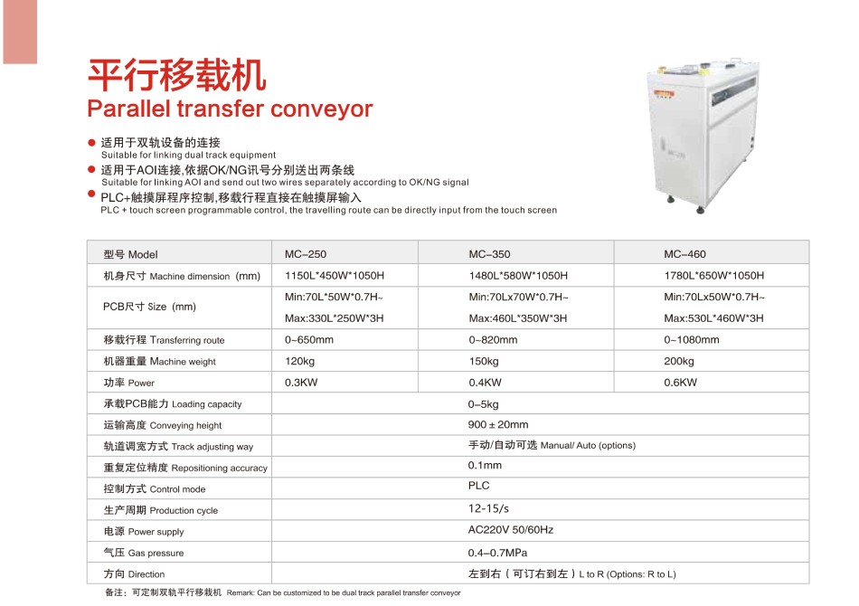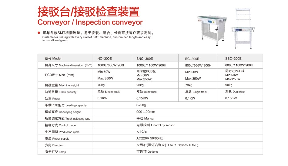 SMT周邊設(shè)備主要有:全自動(dòng)PCB上下料機(jī)、平行移載機(jī)、PCB儲(chǔ)板機(jī)、NG/OK緩存機(jī)、接駁臺(tái)、光板真空上料機(jī)、翻板輸送機(jī)等小型機(jī)。