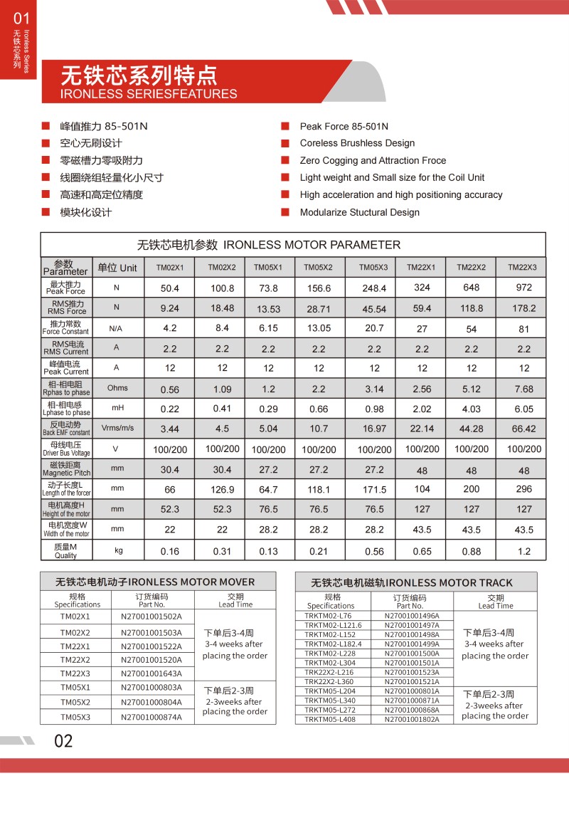 | 無鐵芯直線電機(jī)參數(shù)IRON LESS MOTOR PARAMETER | |||||||||