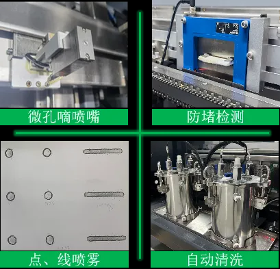 采用微孔滴噴嘴,130um直徑,噴射范圍2~8mm。伺服電機運動控制,點對點式噴射,大量節(jié)約助焊劑使用,噴射精度±0.25mm。標(biāo)配噴嘴防堵檢測、自動清洗功能。
