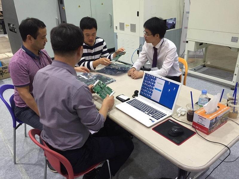 展會(huì)期間,前來參觀的觀展商絡(luò)繹不絕,對(duì)我們參展的機(jī)器——選擇性波峰焊SUNFLOW3產(chǎn)生了濃厚的興趣,在我們資深工程師的詳細(xì)解說下,觀展商對(duì)我們的機(jī)器有了更深的了解。不少客戶咨詢了我們的機(jī)器,并帶著產(chǎn)品到展會(huì)現(xiàn)場(chǎng)測(cè)試,紛紛對(duì)我們產(chǎn)品的技術(shù)水平表示高度的贊許和認(rèn)可。